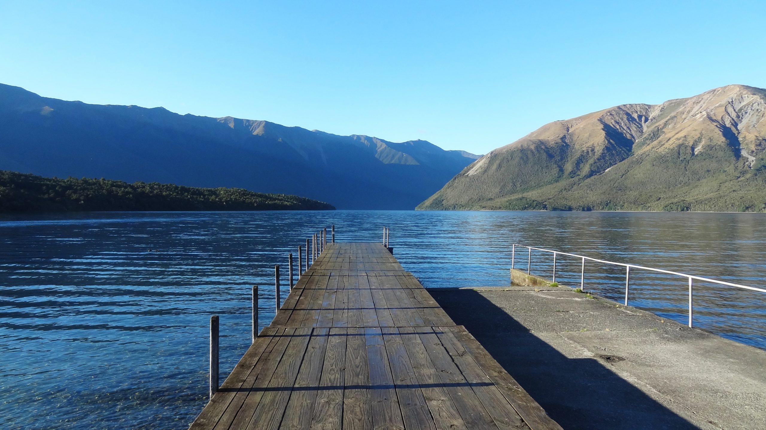 Avant de gravir cette montagne, je m’arrête aux fameux pontons que l’on trouve en Nouvelle Zélande. Un endroit très photogénique, où l’on voudrait se prélasser avec un bon bouquin, mais….
