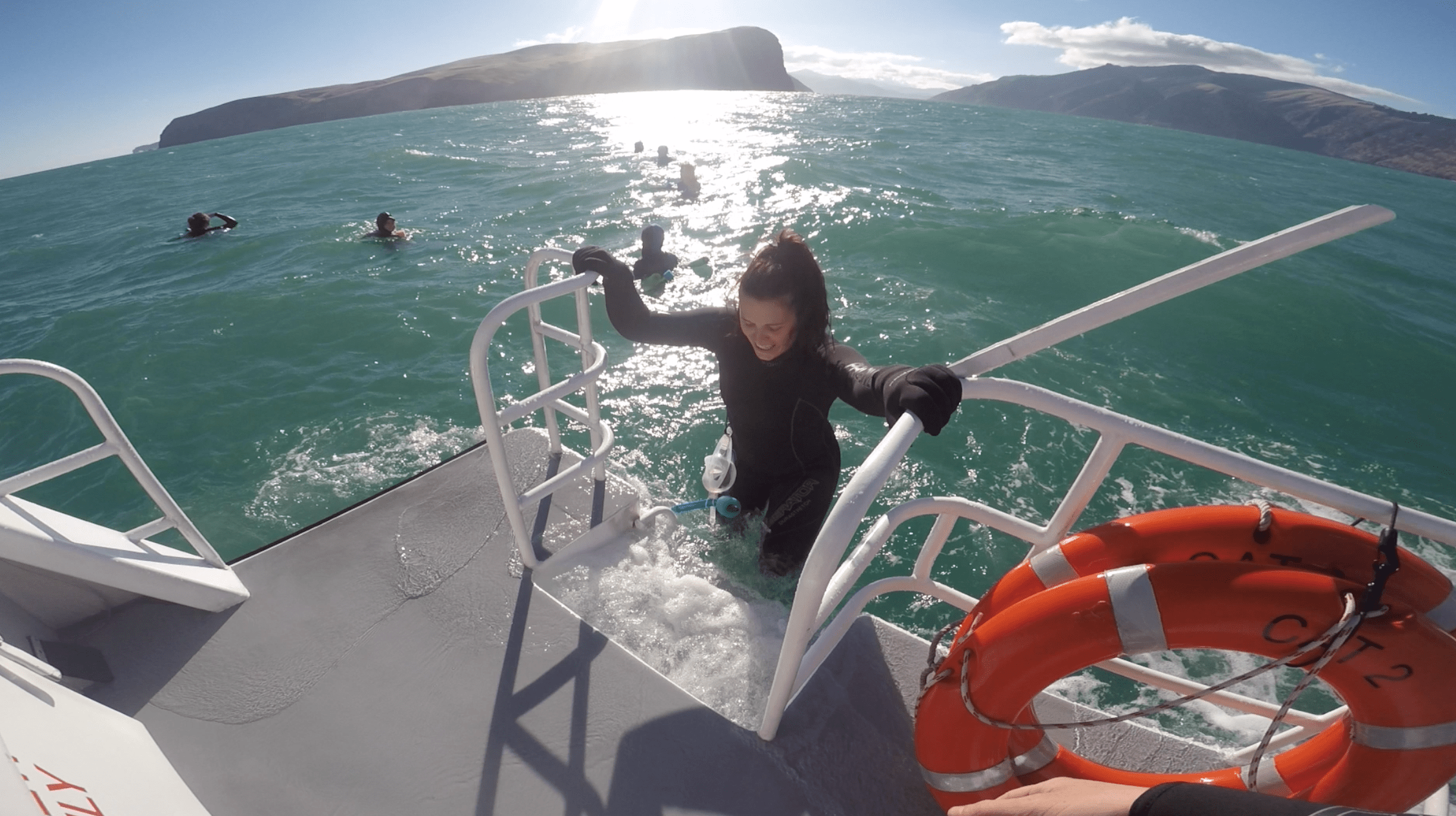 L’après midi, j’avais rendez-vous avec les dauphins pour apprendre à nager dans l’océan pacifique pendant que Lisa faisait une croisière.