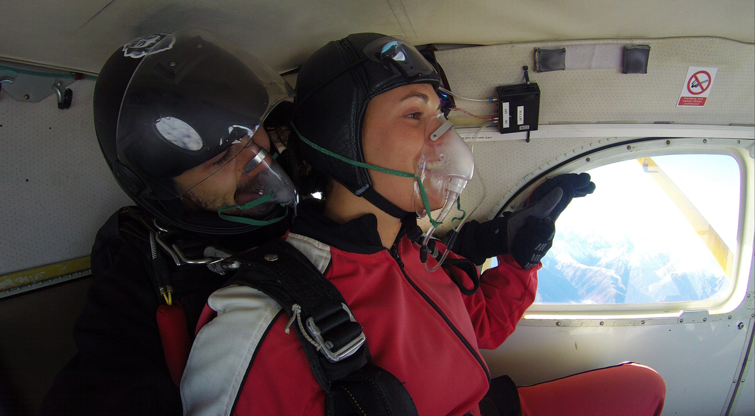 Au programme le saut en parachute le plus haut de Nouvelle Zélande à 5792m/19000 feet (un des plus haut pratiqué dans le monde). Une chute libre d’environ 85 secondes qui défile à la vitesse de 270km/h. La vue là haut est magnifique, on domine les glaciers et notamment le mont le plus haut de Nouvelle Zélande (Mount Cook), mais j’ai du affronter des températures avoisinantes les -20/-30 degrés : Ca pique ! La combinaison de tout cela, m’a mis un peu en difficulté pour respirer lors de mon saut. Pourtant ils nous mettent sous oxygène dans l’avion. Et cela ne s’est pas arrangé avec la dépressurisation rapide. Mais le jeu en valait la chandelle :