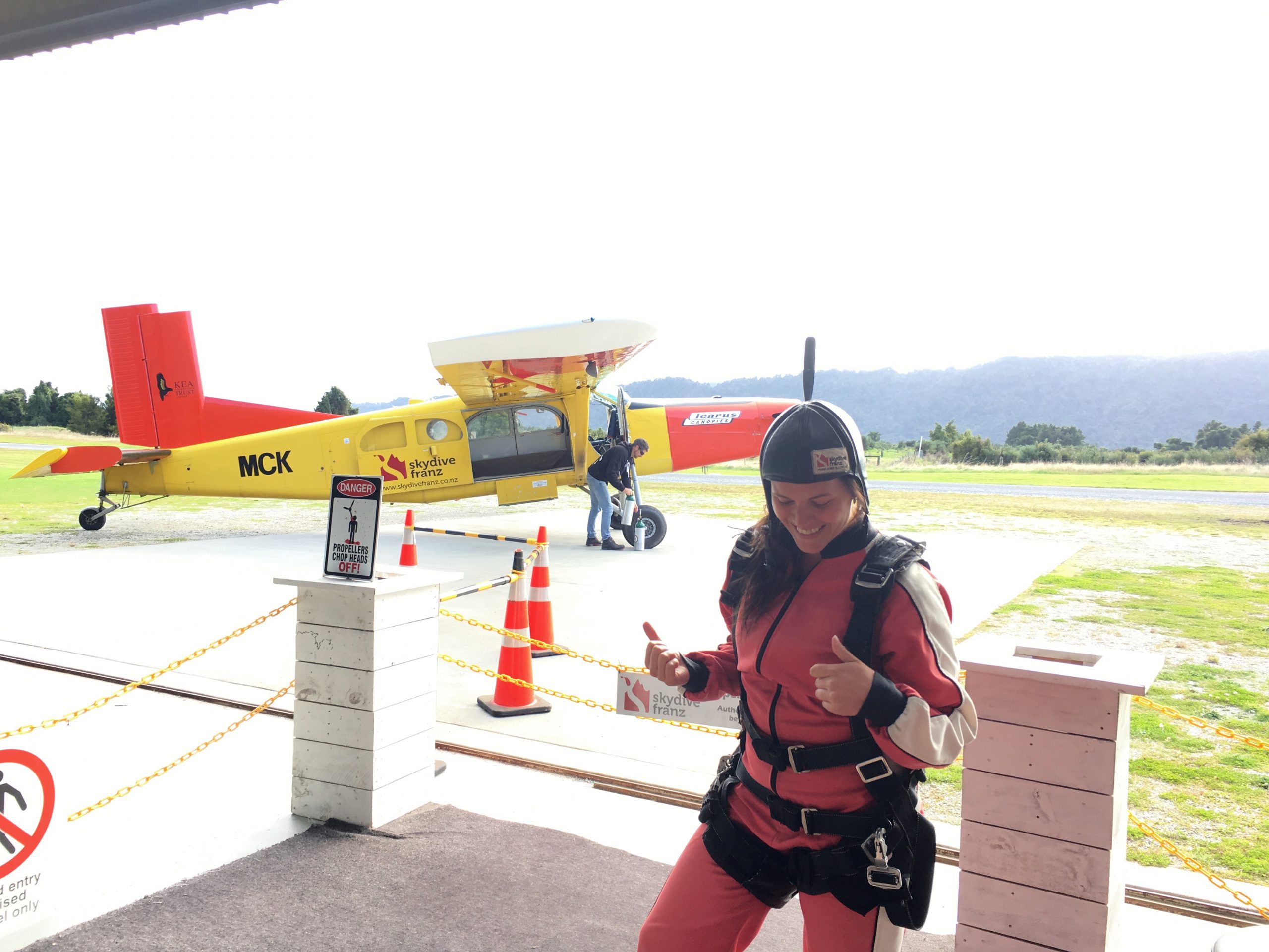 Arrivée à Franz Joseph un peu tard, j’en profite pour me promener dans les boutiques, prendre un chocolat chaud : bref je profite ! Je passe devant des agences qui proposent tous genres d’activités attractives telles que des déposes sur glacier en hélicoptère. Sur le chemin pour me renseigner, je passe devant le stand du saut en parachute. J’échange deux mots avec la femme à l’accueil. L’adrénaline me monte, après tout pourquoi ne pas faire un truc complètement fou ? Dépasser ses peurs, pour s’en souvenir toute une vie…VENDU