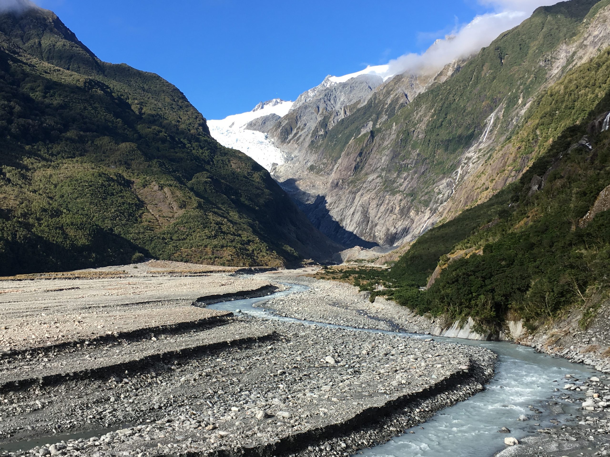 Je me contente donc de quelques randonnées accessibles pour arriver au pied du glacier. Malheureusement je suis déçue du rendu. Je m’attendais à être émerveillée, finalement on ne voit qu’une petite partie. En même temps difficile d’égaler la vue que j’ai pu admirer lors de mon saut. Je tente donc ma chance à Fox glacier non loin de là.