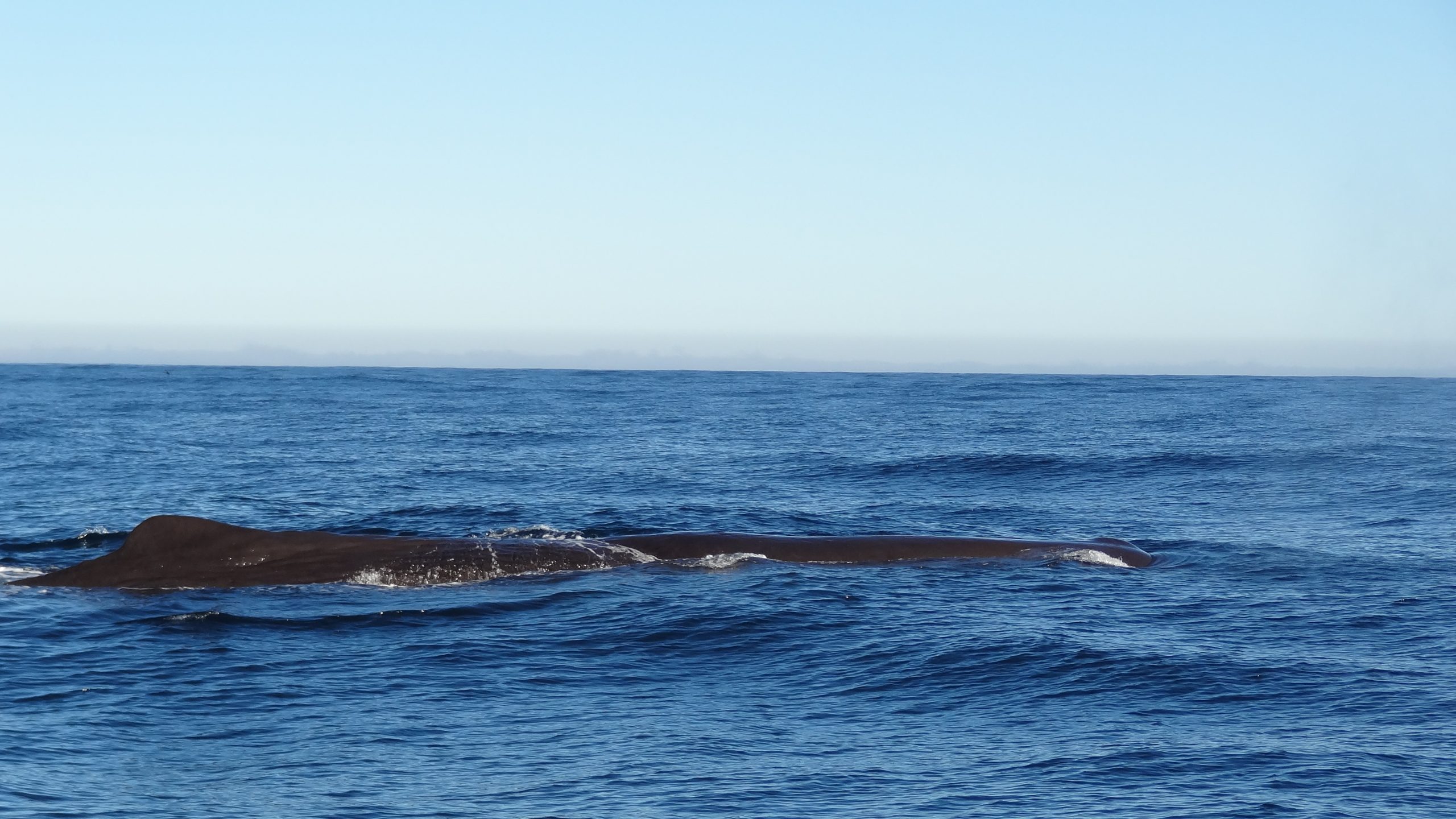Ce qui est dommage c’est que l’on ne voit que la partie émergée de la bête, c’est à dire pas grand chose, surtout quand l’on sait que les « sperm whales » peuvent atteindre jusqu’à 20m ce qui leur confère la troisième place au classement après la baleine bleue.