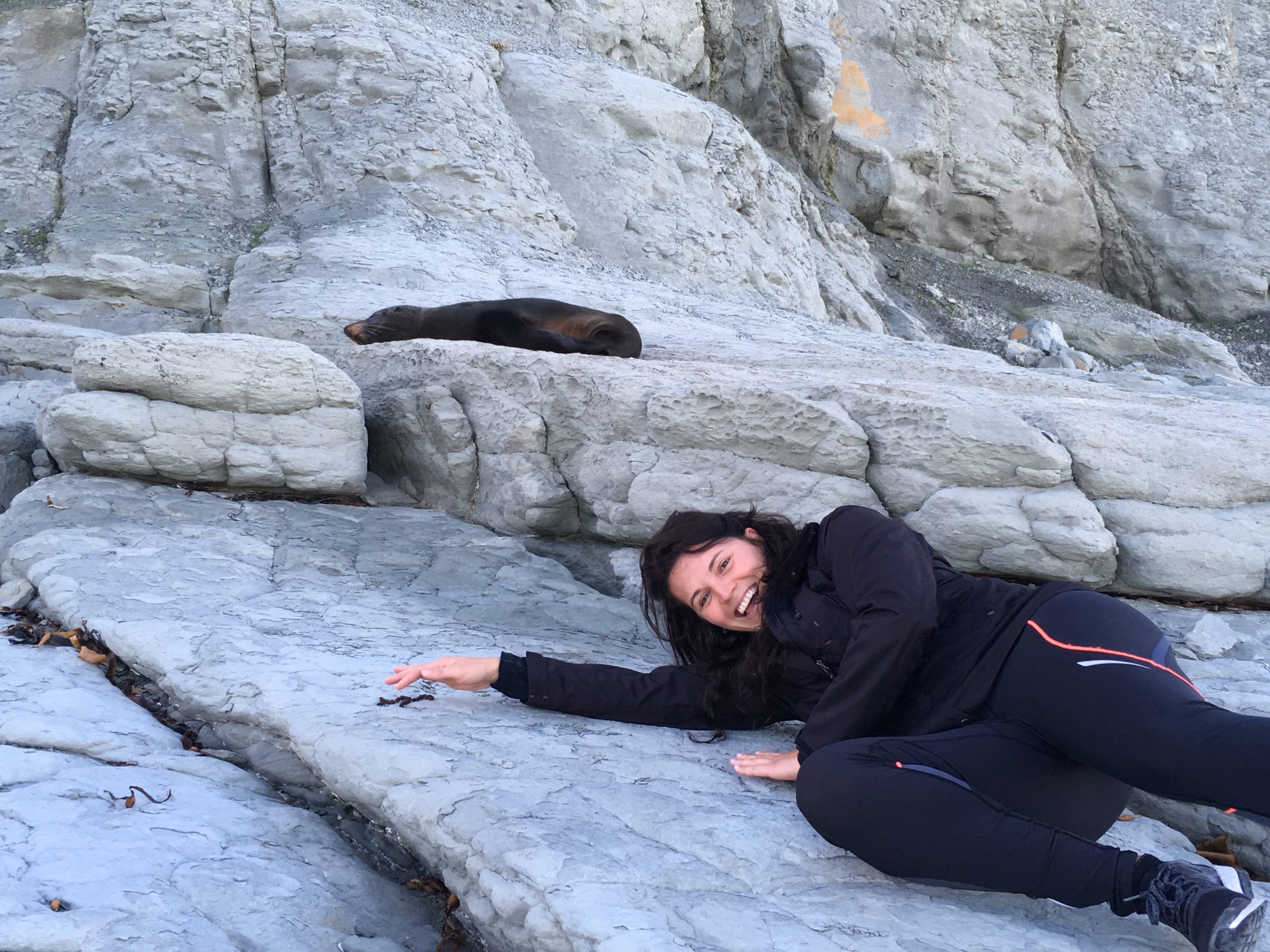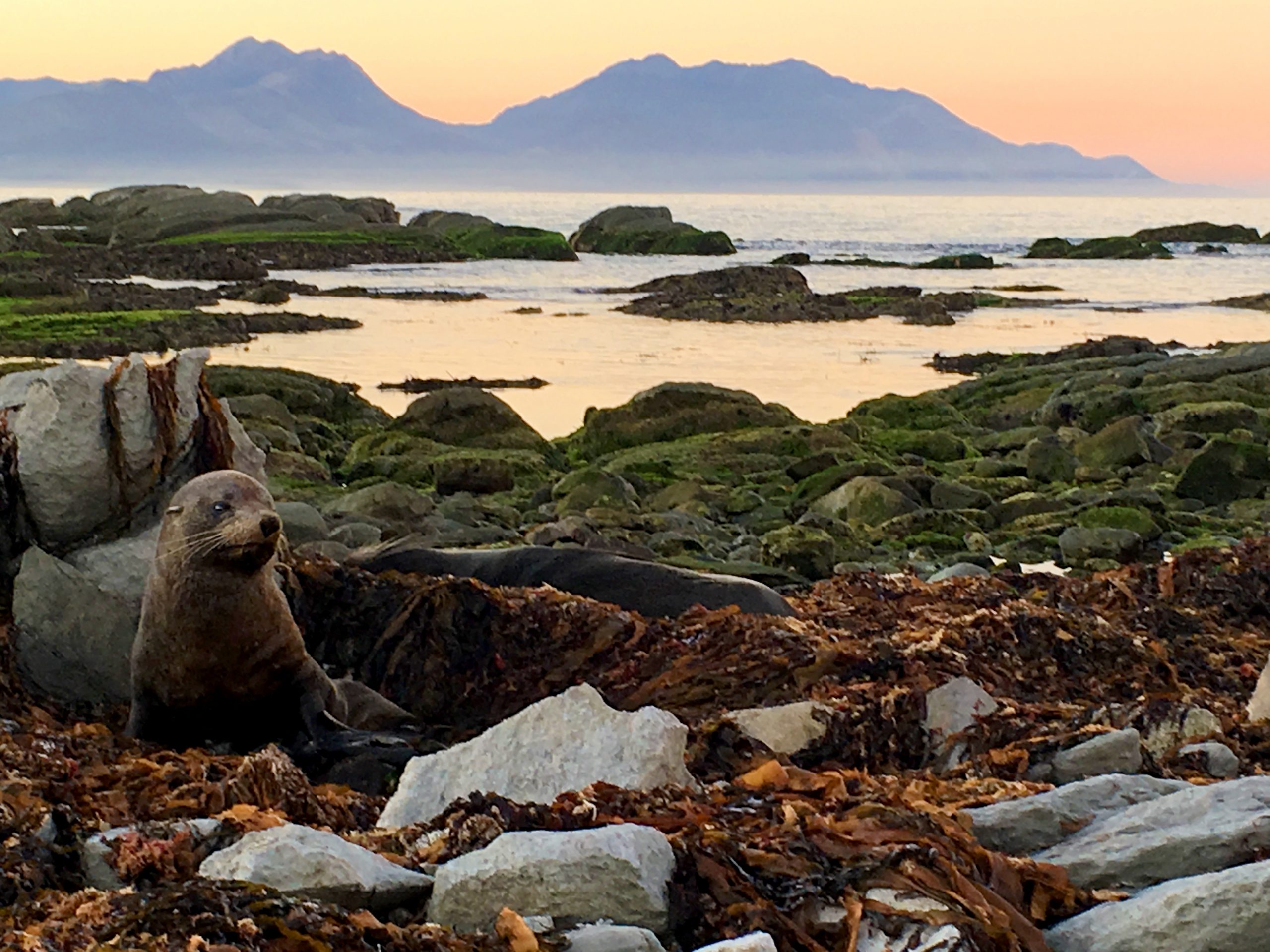 On profite de cette dernière soirée pour aller voir la colonie de phoques au coucher de soleil, le long de la péninsule. Un coucher de soleil magique où le relief des montagnes se reflète sur l’océan pacifique. On prend le selfie phoque, avec la pause qui va avec : étalées de tout notre long sur un caillou et on rentre rejoindre Jill. Bonne nuit !