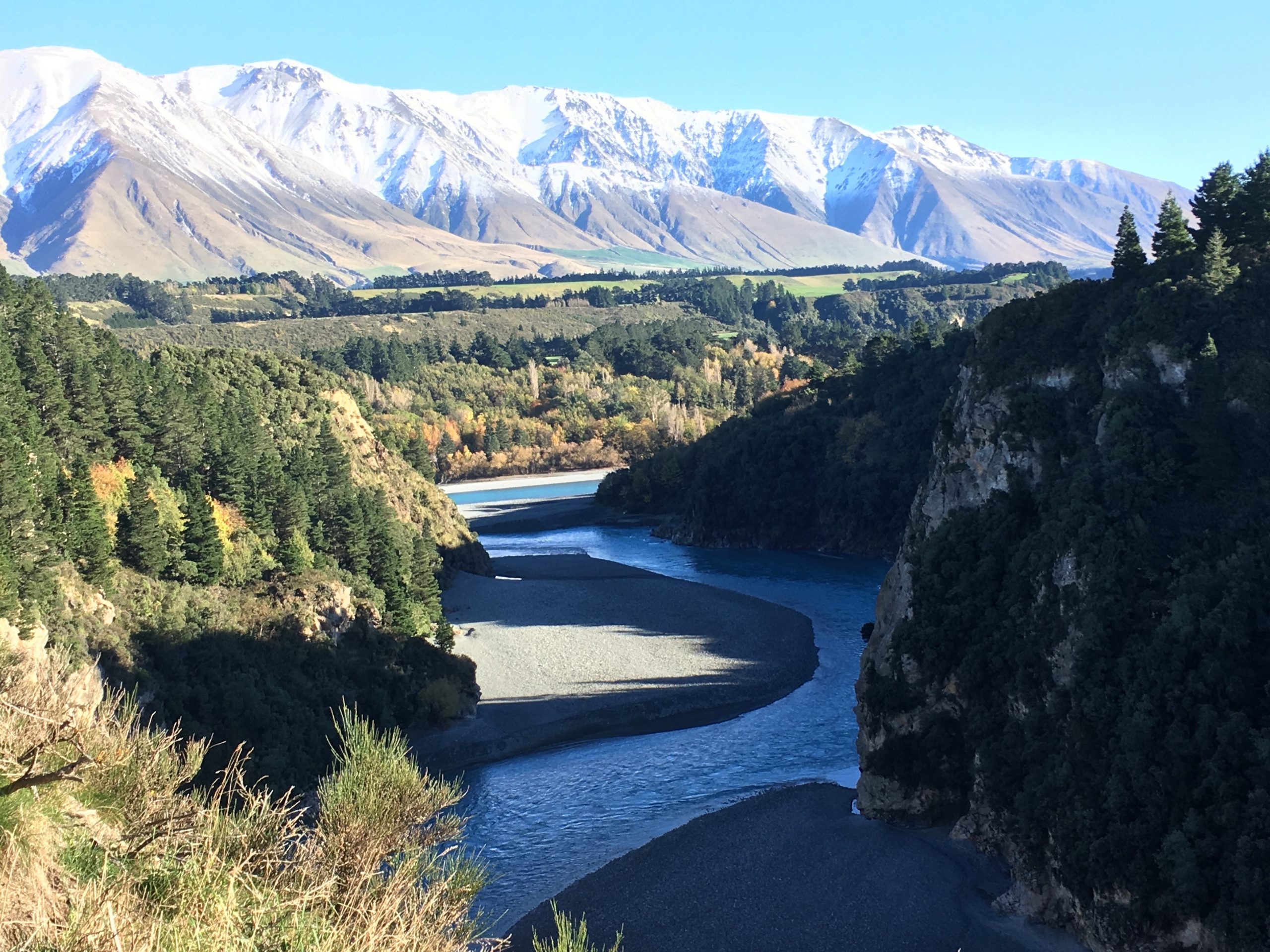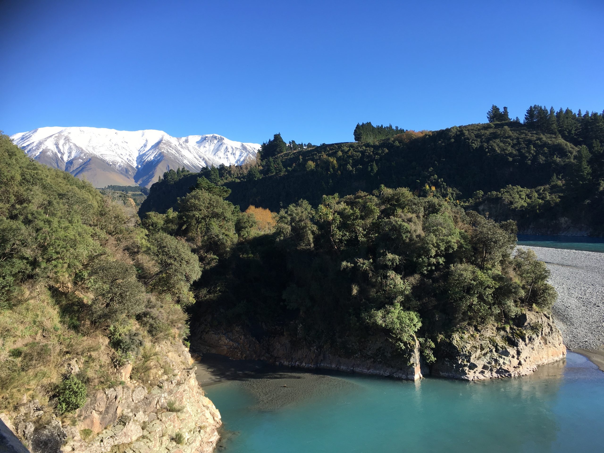 Direction ARTHUR PASS National Park ! La route est tout simplement sublime, je ne m’en lasse pas. Sur le chemin je fais une halte aux gorges de RAKAIA. Son bleu turquoise du à la fonte des glaciers est magnifiques, j’aurais aimé être en été une seconde pour plonger dedans.