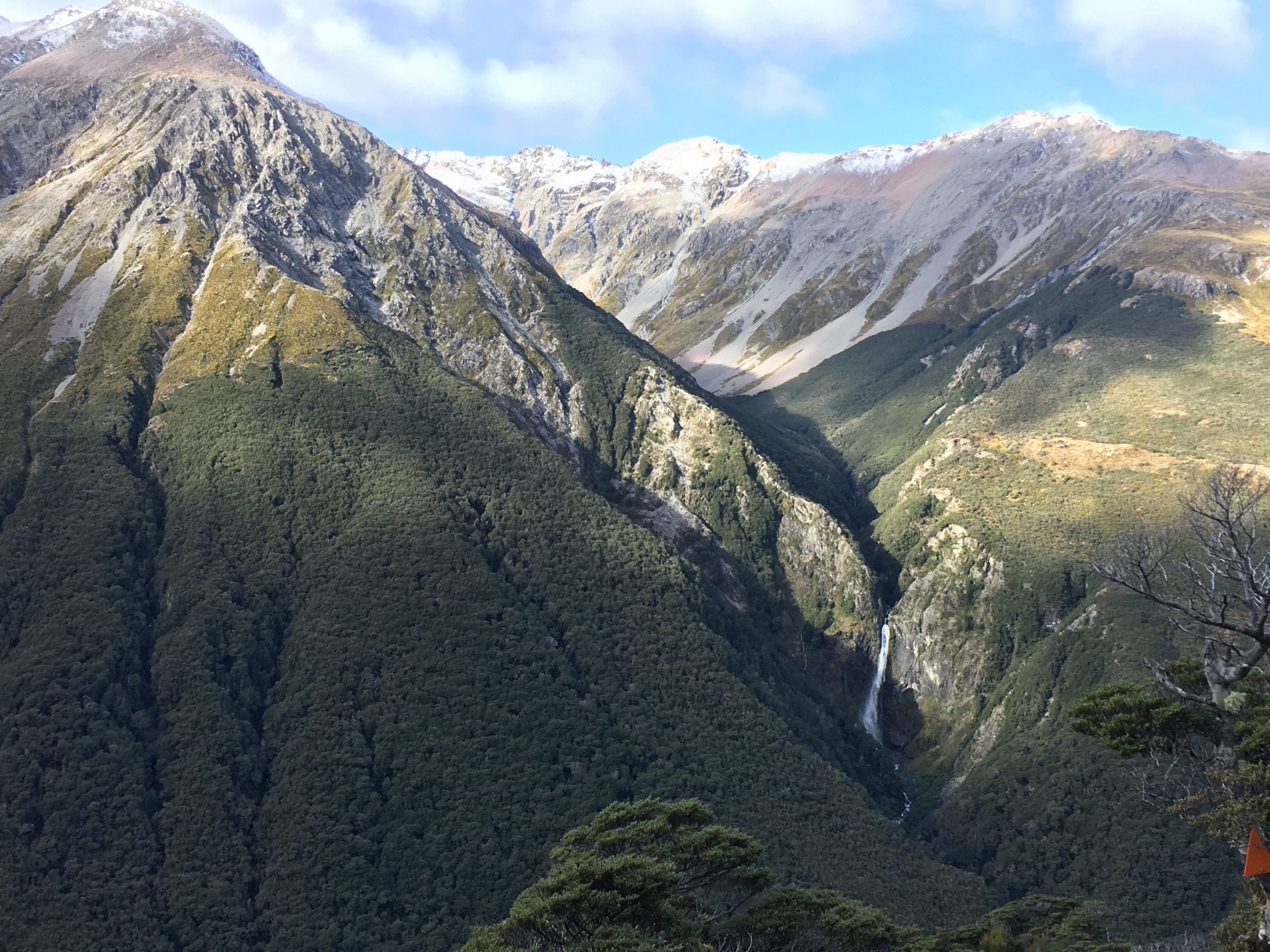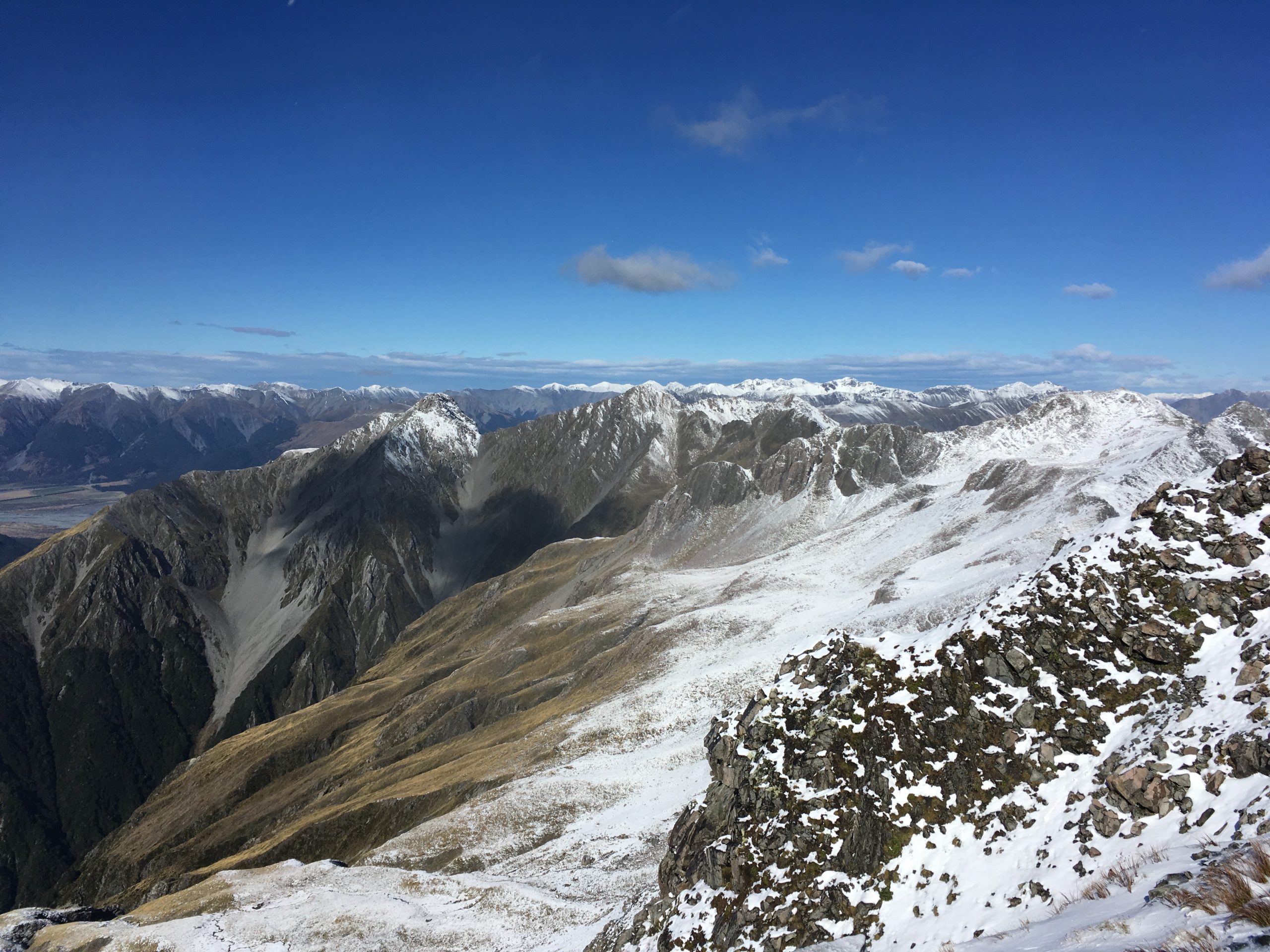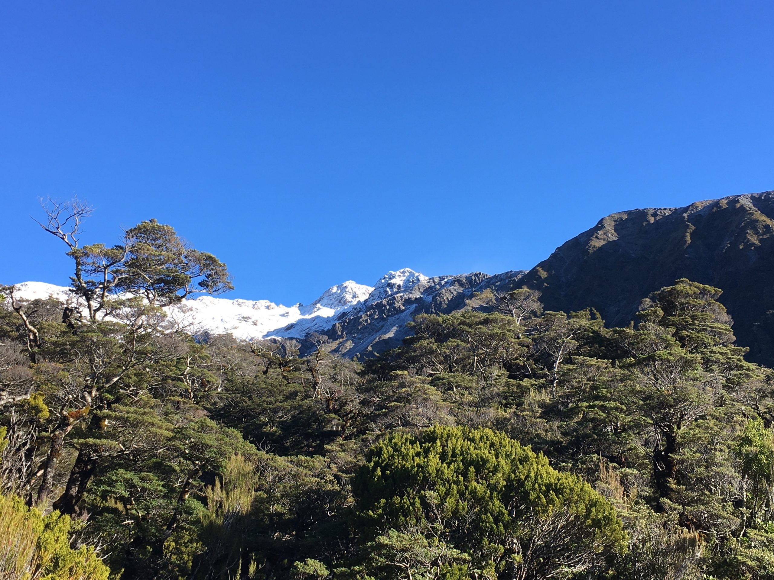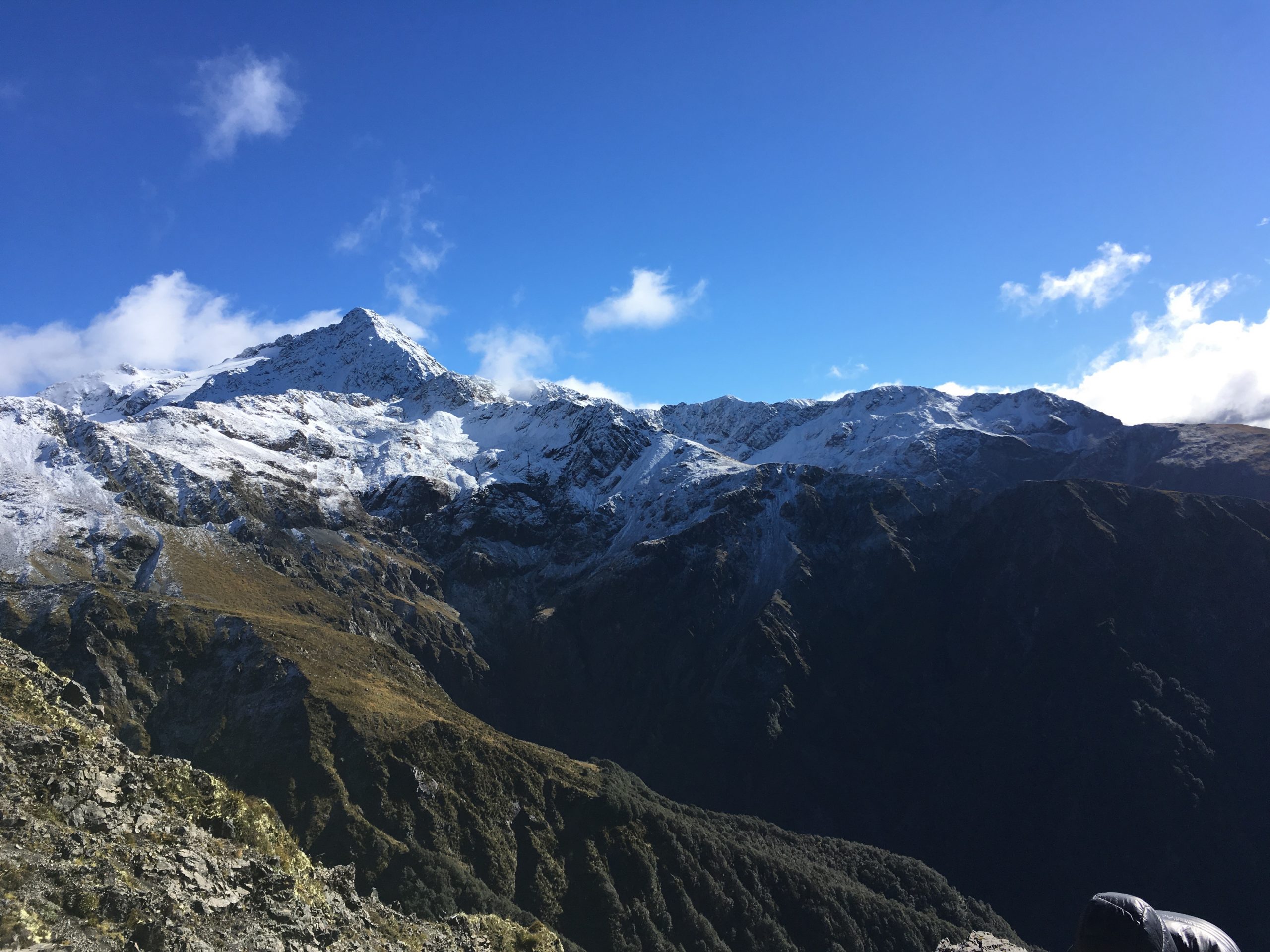 Bon, j’en suis revenue vivante, quoique un petit peu congelée, une température à environ -5°, un vent pas loin des 60 km, le tout sous la neige. Ah les sommets enneigés, c’est beau ! mais pas évident à grimper. Je me suis finalement arrêtée quelques mètres avant le sommet. La fin du parcours, avec la neige s’avérait beaucoup trop dangereux, avec un passage sur arête. Etant donné la puissance du vent, j’ai préféré rester en vie ! Je finis donc cette randonnée en 5h50. Même si je l’ai trouvé assez difficile compte tenu de la neige. Elle ne m’a pas cassé les jambes comme celle du Mount Cook, toujours indétrônable !