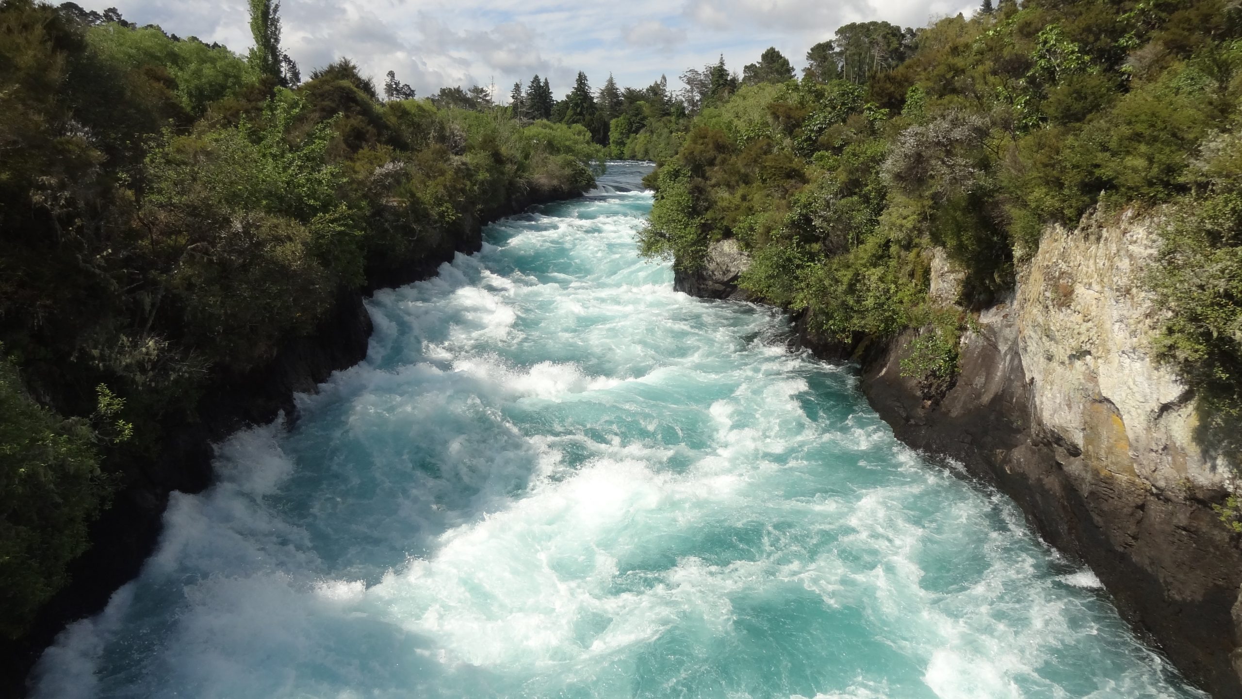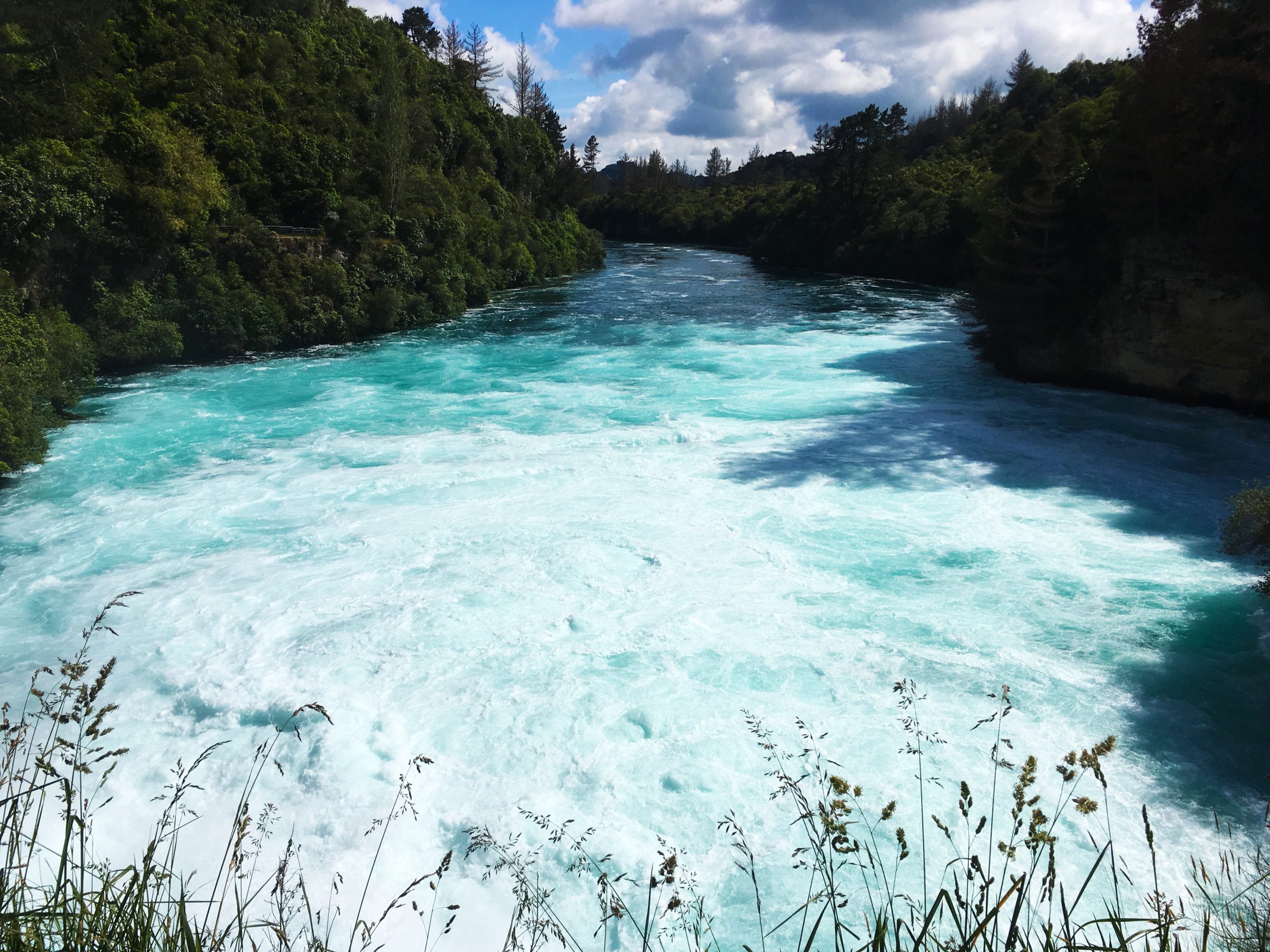 Bref, après avoir marché pendant environ 3h, nous sommes partis nous relaxer dans une rivière où l’eau est dans les 40°C : « Kerosene Creek ». Il faudrait que j’y retourne en hiver pour apprécier ces bains naturels. De plus les eaux de Rotorua sont connues pour leur bienfaits thérapeutiques : parfait après une bonne marche !Le jour suivant, je suis partie en direction de Taupo, afin de voir les « Huka Falls » où coule le fleuve Waikato. Des eaux turquoises magnifiques, en raison de leur forte concentration en oxygène. Une puissance qui impressionne : elle pourrait remplir plusieurs piscines olympiques chaque minute, soit un débit de 220 000 litres/sec. Enfin rendez-vous aux eaux sacrées de « Wai-O-Tapu », la plus grande zone d’activité thermique de la région. Un endroit surprenant, où j’allais de surprise en surprise… On passe à côté de cratères, de piscines aux eaux de toutes les couleurs (couleur liée aux composants chimiques provenant des sources bouillonnantes de la zone), de fumerolles, de bains de boue…D’ailleurs, même si cela a la particularité d’être magnifique, c’est aussi incroyablement puant ! Le souffre confère une odeur d’oeufs pourris qui lève littéralement le coeur. Encore en ville c’est plus ou moins supportable, mais le nez dans les cratères c’est tout simplement affreux.