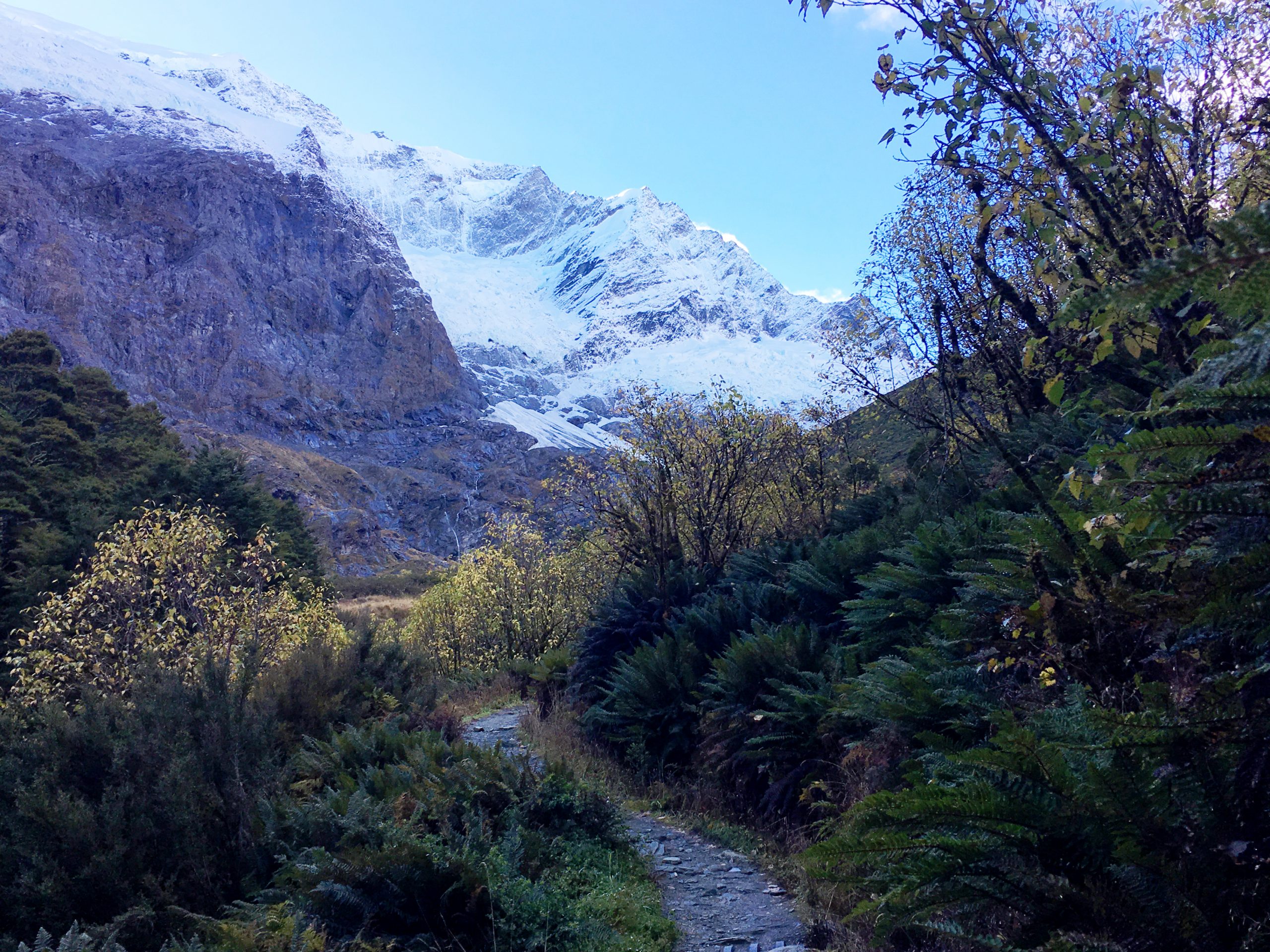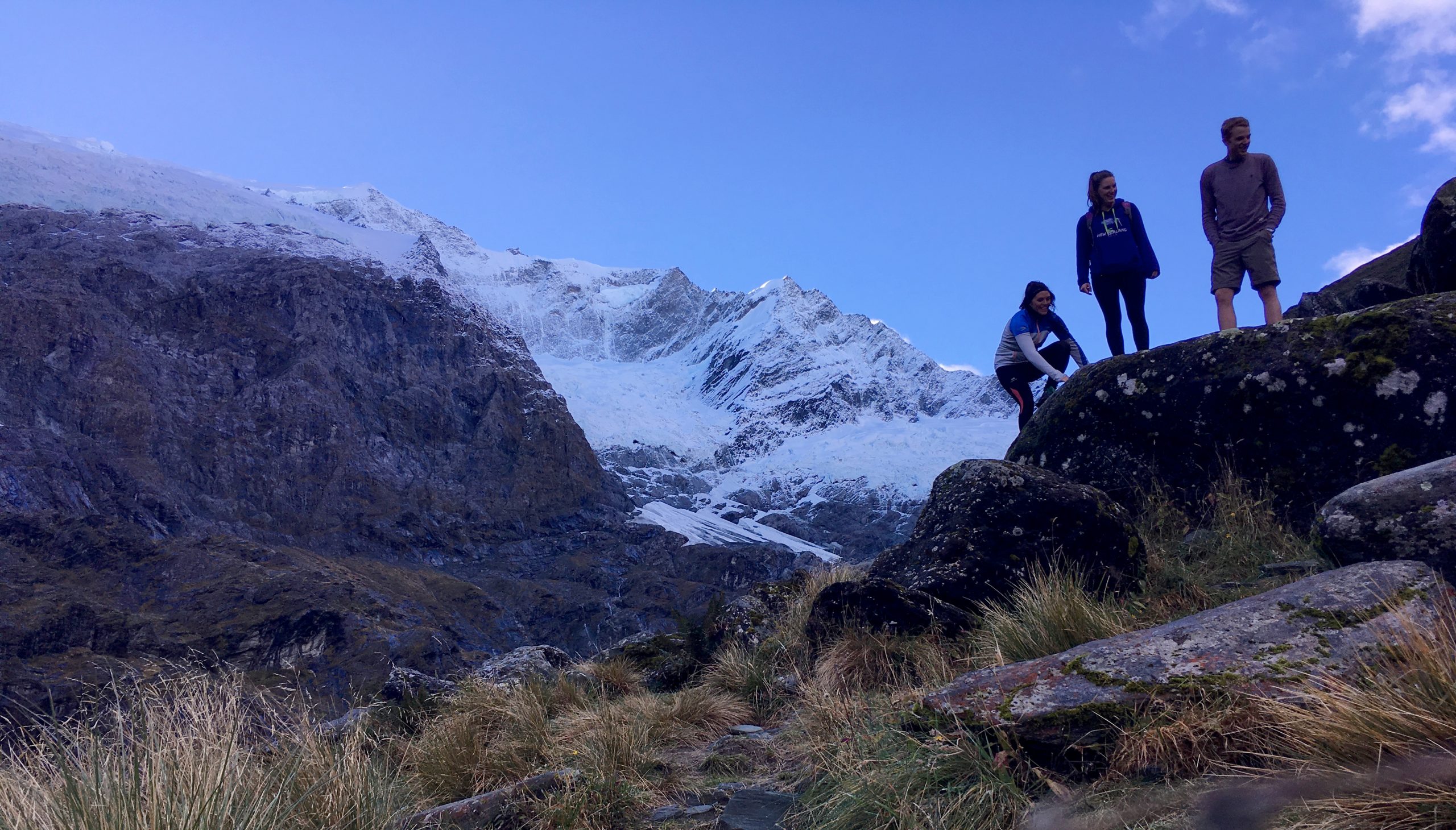 Le lendemain tout le monde se motive et nous voici partis pour faire la randonnée du Rob Roy à 1h de route de Wanaka. Nous partons donc à 4 (personnes rencontrées dans l’auberge) pour une balade de 3h à la rencontre de ce glacier. Le temps pourtant pas prometteur, nous offre une très belle balade. On se restaure au pied du glacier. Nous avons même pu assister à quelques avalanches qui se sont déclenchées.